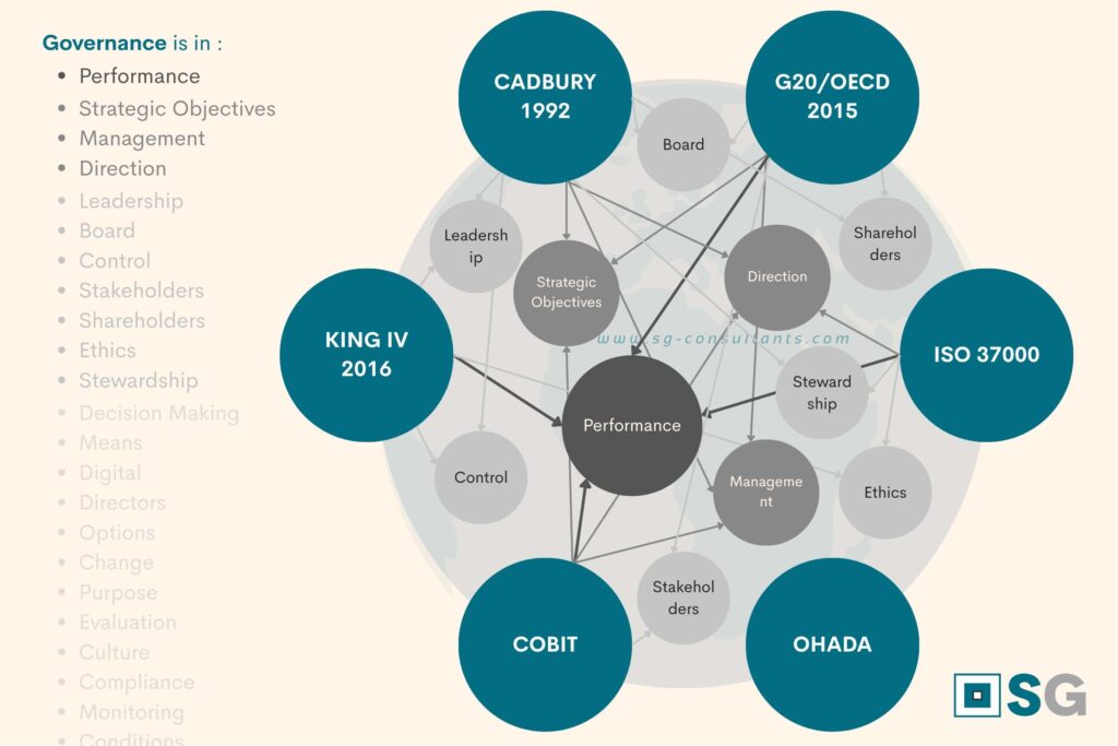In true SG fashion, we’ve curated a visual synthesis that captures the recurring themes of governance across the frameworks we reviewed. Looking at the bubble visual, one theme stands out clearly: performance. And rightly so—governance exists to create an environment that enables the achievement of strategic goals. A culture of performance, once established, builds momentum and paves the way toward those goals.